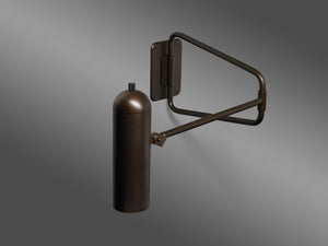 The Mallet Swing Arm Sconce is machined by hand from solid brass. The shade and arm are made from thick-walled brass tubing. All parts are hand polished and patina’d. There are two pivot points to create a wide range of depth adjustments.