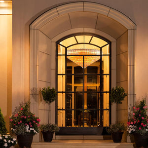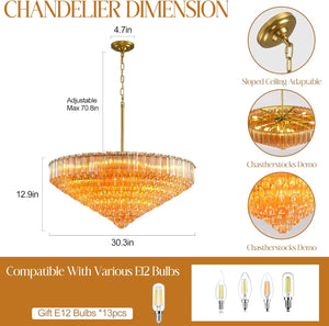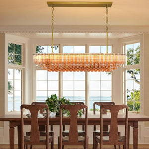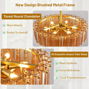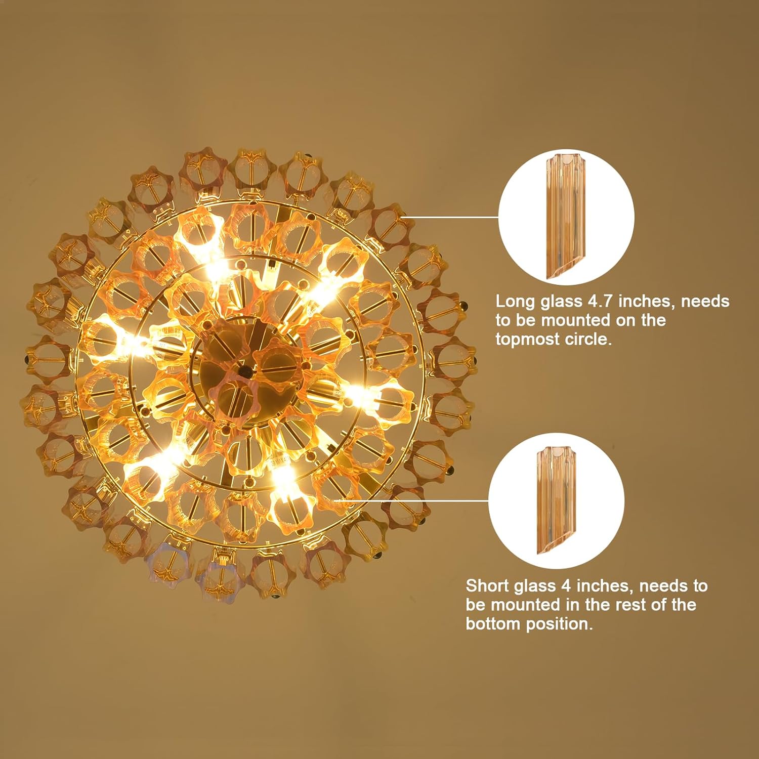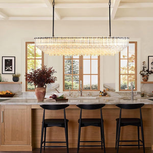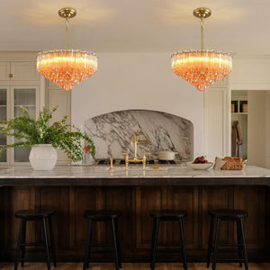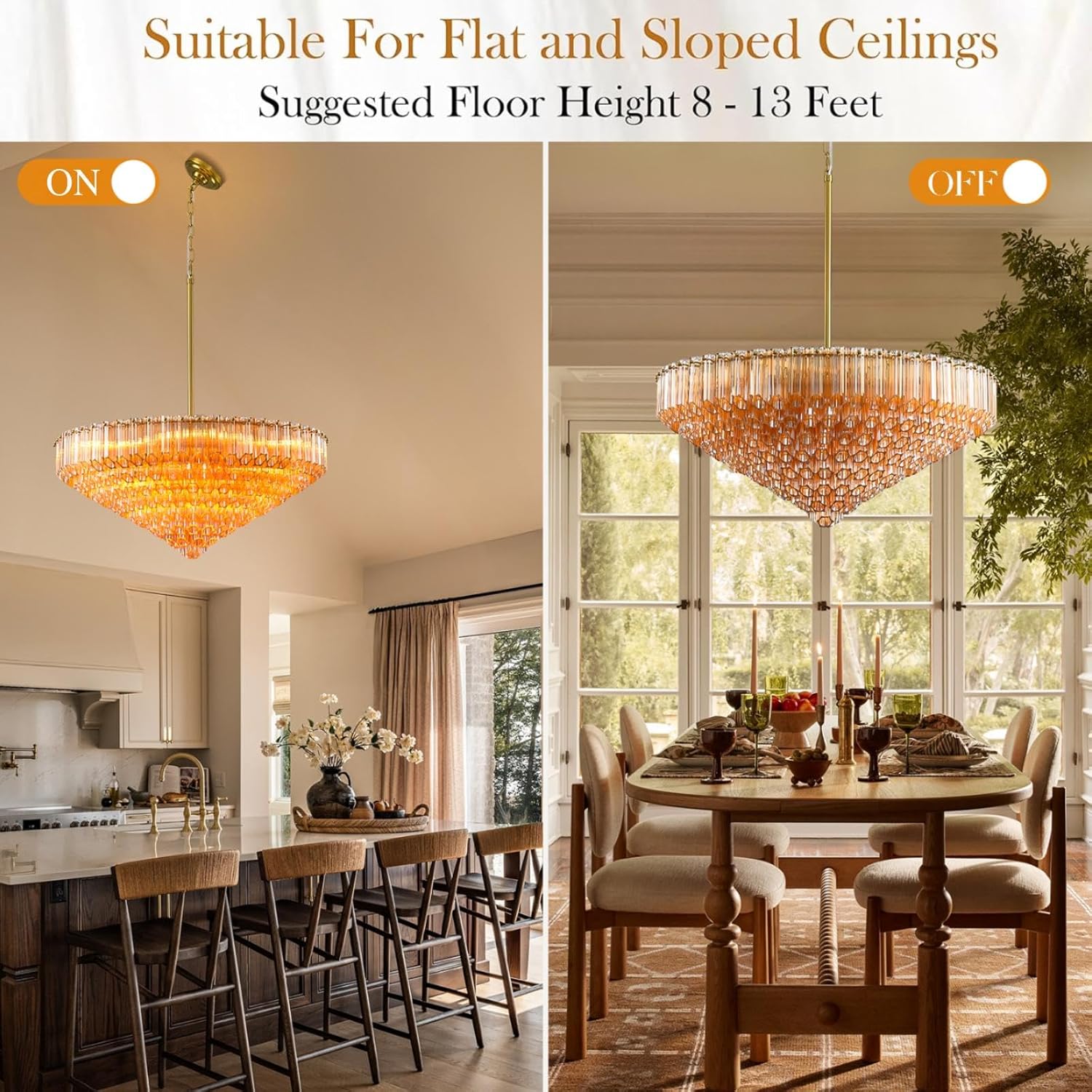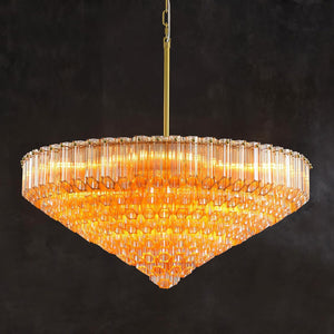 Expertly arranged with 100+ amber-tipped K9 crystal rods, this small dining room chandelier radiates warm golden illumination perfect for grand dining tables, estate dining rooms, hotels, and commercial kitchens. Multi-tiered layers elevate luxury for living rooms or kitchen islands.