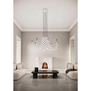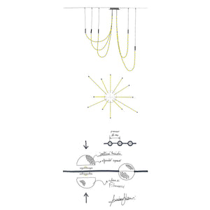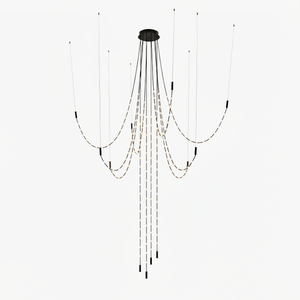 Inspired by classic chandeliers, the Multidot Customize Chandelier reinterprets the traditional candelabra through contemporary design and advanced technology. Its distinctive cables, each adorned with luminous spheres, allow the lamp to seamlessly shift between elegant formality and sleek modernity. This lighting piece blends historical references with innovative elements, offering a versatile fixture that complements both timeless and contemporary interiors.