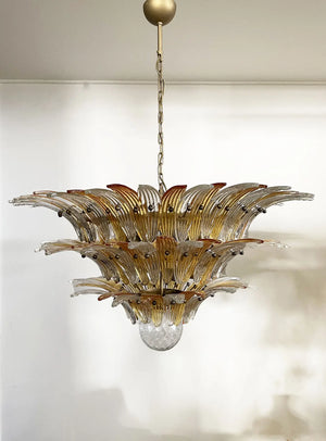 Home Murano Chandelier 104 Clear and Yellow Palmette Glass