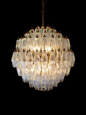 This elegant Murano Chandelier features 140 transparent glasses, adding a touch of sophistication to any space. Made by expert craftsmen, this chandelier is sure to make a statement with its impeccable design and high-quality materials. Elevate your home decor with this stunning piece.