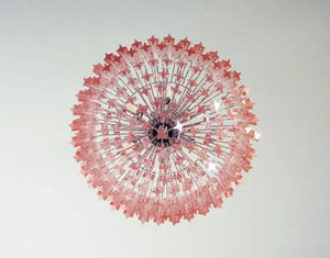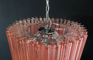 Expertly crafted in Murano, Italy, this chandelier boasts 163 beautiful prisms in a delicate shade of pink. Illuminate any room with its elegant design and enhance the atmosphere with a touch of luxury. Perfect for those who appreciate fine craftsmanship and timeless beauty.