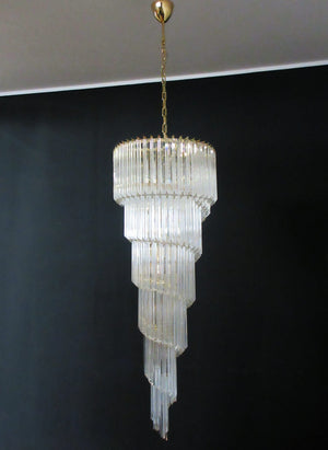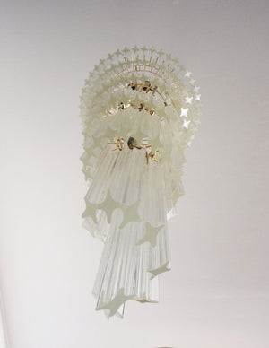 This masterpiece of an Italian chandelier is adorned with 166 Clear Prism glasses of the quadriedri type. With its 166 handcrafted Murano glass elements, this chandelier is certain to be a focal point in any room it occupies. The frame is available in silver patinated chrome, matte gold, shiny gold, and shiny chrome.