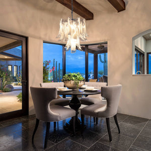 Perfect above the dining table or in your living room, this chandelier will be a radiant centerpiece that adds a sense of luxury and refinement to any room. With its elegant and stylish design, it will create an atmosphere of timeless beauty and elegance.