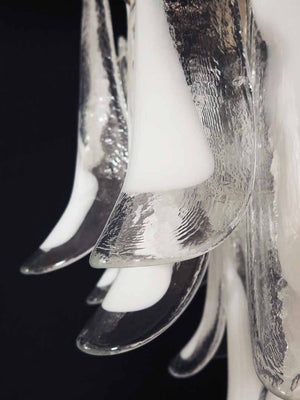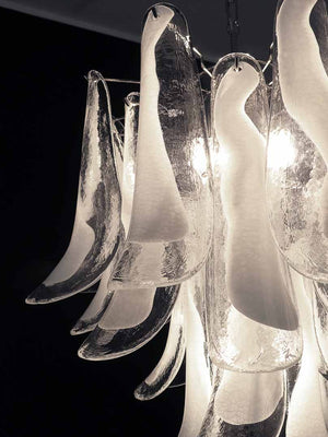 Treat your home to sublime elegance with our stunning Italian Mazzega style chandelier. This impressive chandelier is adorned with 26 large and impressive clear/white petals that create an enchanting and inviting light.