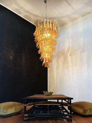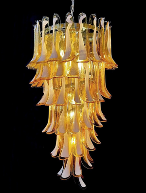 Illuminate any room with the elegant Murano Chandelier. With 83 delicate petals in a warm caramel color, this chandelier is a stunning addition to any space. Made of high-quality Murano glass, it exudes sophistication and a touch of luxury. Perfect for creating a luxurious ambiance in your home or business.