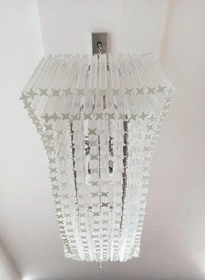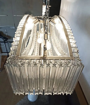 Expertly crafted in Murano, Italy, this Pagoda chandelier boasts 292 transparent prisms for a stunning display of light. Add a touch of elegance to any room with this handcrafted piece, designed to elevate any space with its delicate beauty. Bring a touch of Italian luxury into your home.