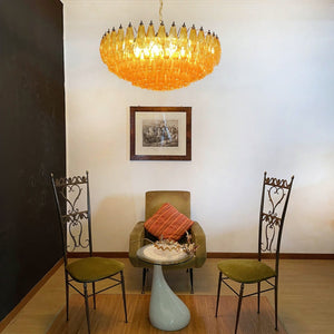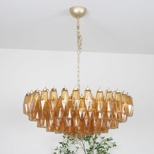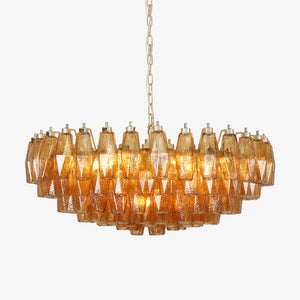 Elevate your space with our Murano Rhombus Amber Glass Chandelier. With its exquisite, handcrafted amber glass elements, this chandelier creates a luxurious display of light and color. Transform any room into a opulent haven and enhance your home decor.