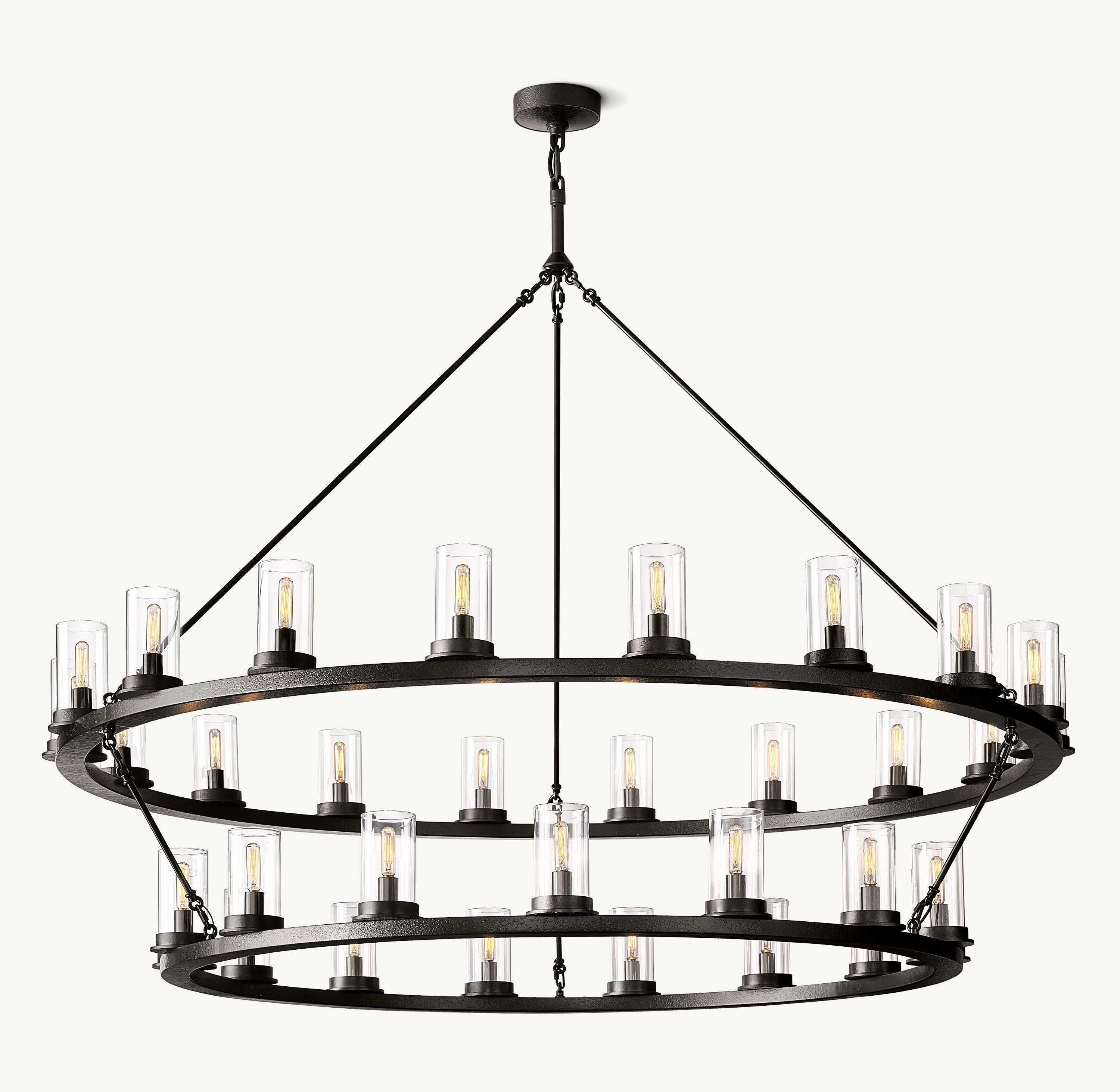 Onder Round Two-Tier Clear Glass Chandelier 60"