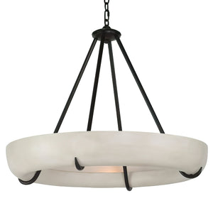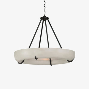 Introduce refined elegance to your space with the Oasislives Orion Alabaster Chandelier. Crafted from genuine alabaster, the wide circular shade emits a warm, diffused glow that enhances any room with natural beauty. Supported by sleek black metal rods, this chandelier blends sculptural form with organic texture, making it an ideal centerpiece for dining rooms, foyers, or vaulted ceilings. With its harmonious balance of modern design and timeless material, the Orion chandelier brings sophistication and serene ambiance to any interior.