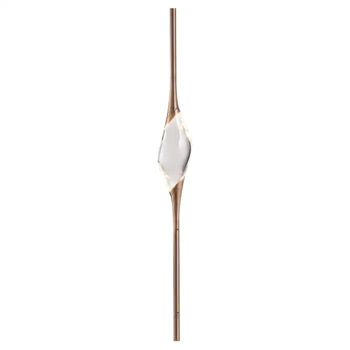 Il Pezzo 12 is a female figure suspended in the air, carrying in her womb the light.‎ It’s nimble, refined, addictive.‎ The solid crystal, illuminated by LEDs, creates suggestive refractions and it’s suspended between brass stems finished in contrasting colours.‎