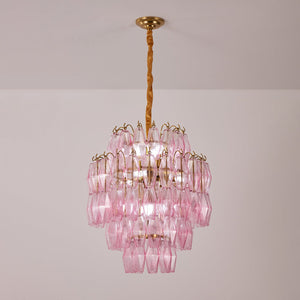 The Oasislives Pink Murano Glass Prism Chandelier is a stunning centerpiece that blends timeless elegance with modern artistry. Featuring tiers of hand-blown Murano glass prisms in a soft pink tone, this chandelier captures and reflects light with dazzling brilliance. Each glass piece is suspended from a polished brass frame, adding a luxurious and sophisticated touch. The twisted brass stem and ceiling canopy complete the design, making it ideal for adding glamour to dining areas, living rooms, or grand entryways. A true statement piece from Oasislives, crafted to elevate any interior with refined beauty and charm.