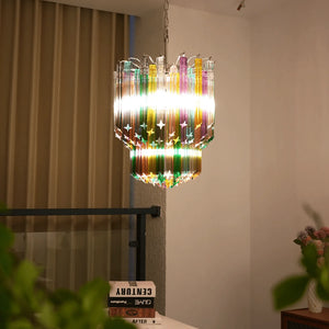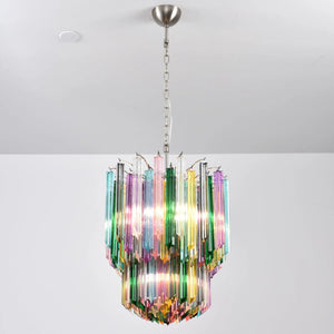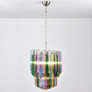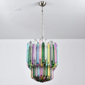The Prismatic Murano Colorful Chandelier features an exquisite assembly of multicolored glass prisms, each meticulously crafted and polished by skilled artisans. This precise craftsmanship results in a distinctive, luxurious centerpiece that enhances any room with its vibrant, elegant glow. The carefully arranged prisms refract light beautifully, creating a captivating ambiance that elevates both modern and classic interiors.