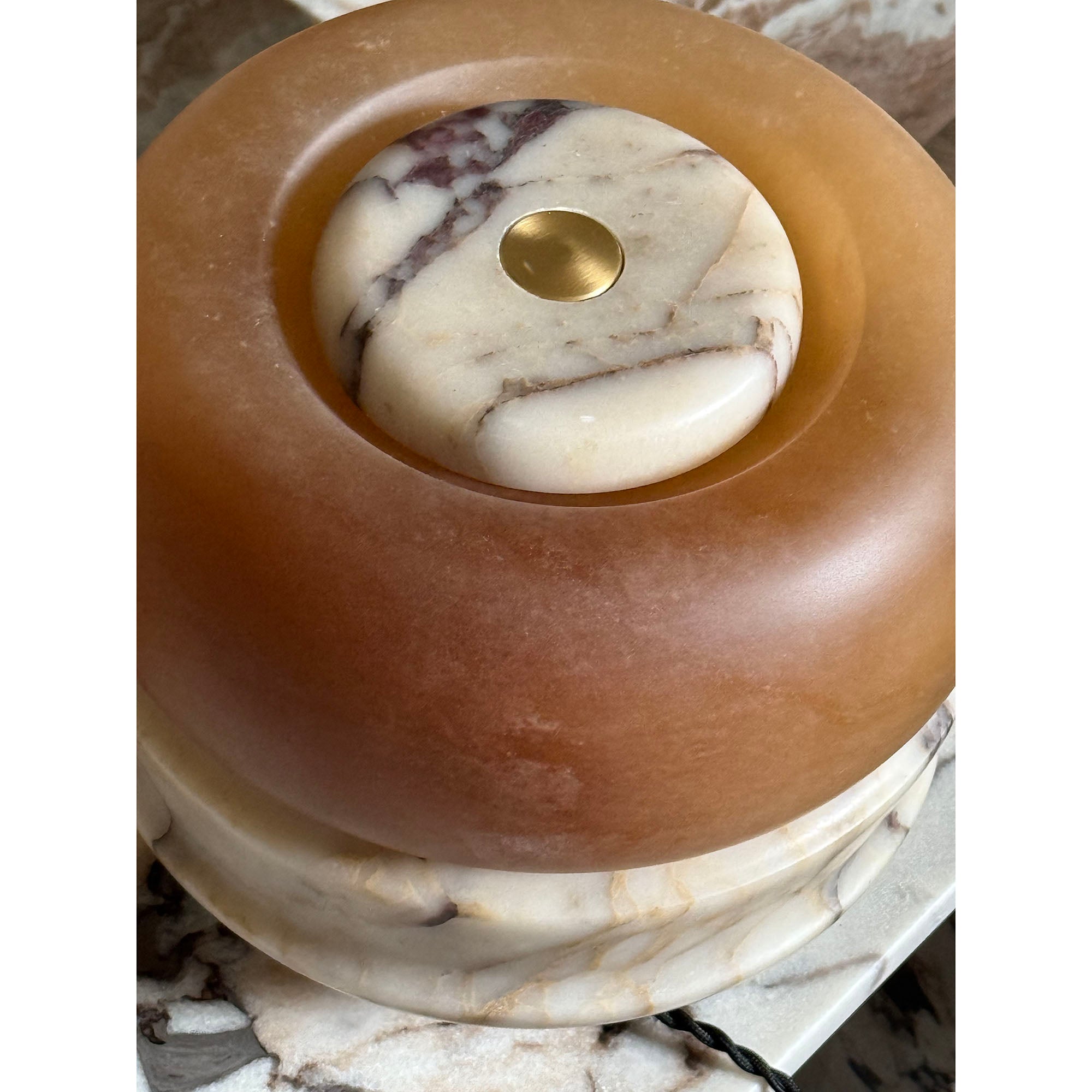 Elevate your space with the Ramson Stone Table Lamp, featuring a refined marble body that brings natural elegance to any room. Its alabaster lampshade softly diffuses light, creating a warm and inviting ambiance. This lamp combines timeless materials with sophisticated design, making it a perfect accent for both modern and classic interiors.