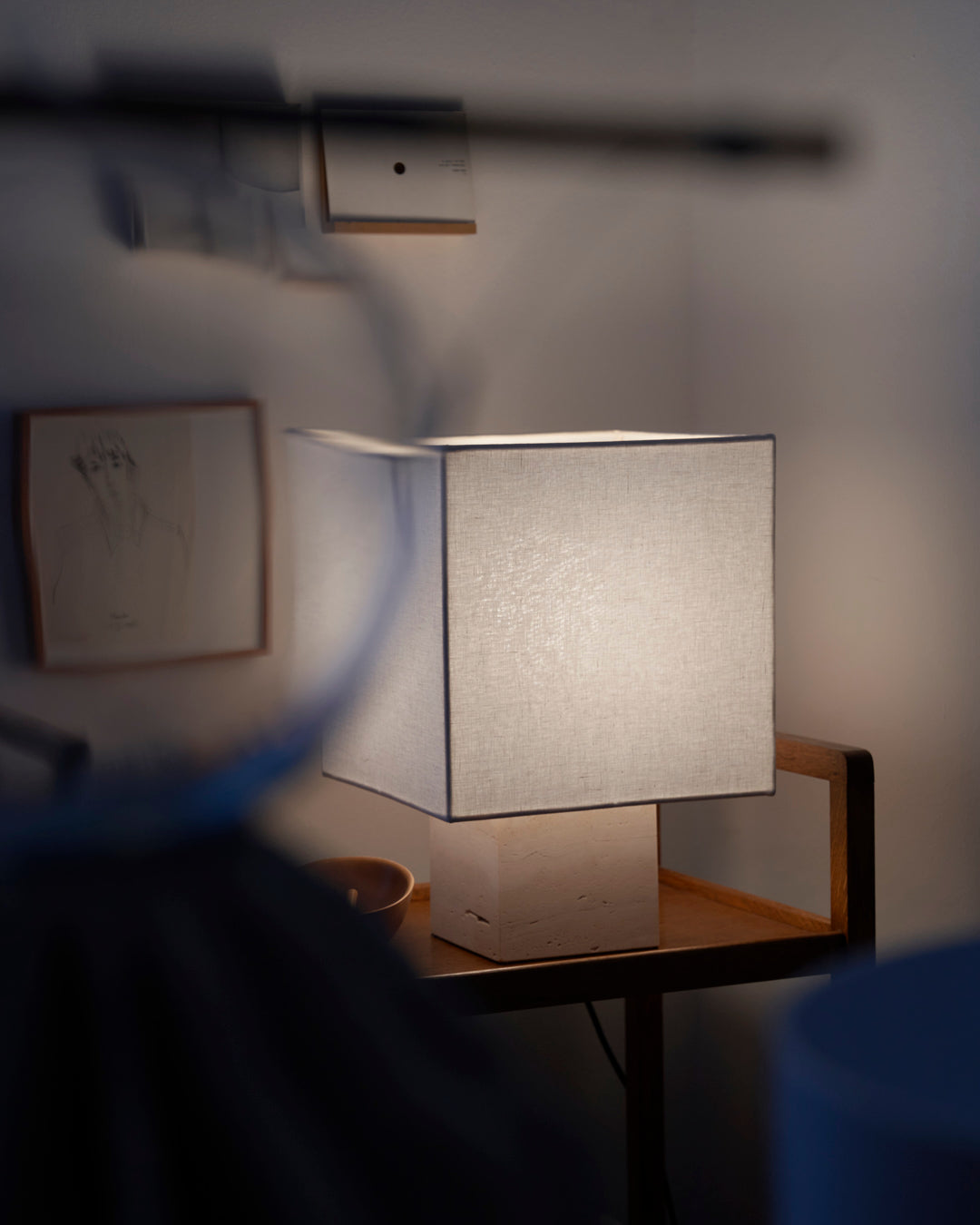 Based in Puglia in the south of Italy, Nassi celebrates the historic savoir faire of the bottega and the story of three generations of women. Made from solid travertine, the Roma I table lamp is a work of simplicity with its square base and shade. Featuring hand sewn shades, the linen fabric is carefully stretched over the frame and finished with internal trimmings. Choose a shade in the same tone for an elegant coordinated look or play around with a contrasting colour.