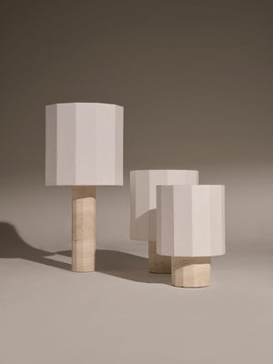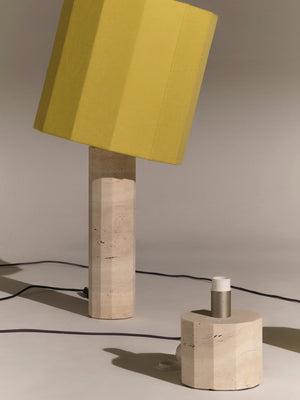 Based in Puglia in the south of Italy, Nassi celebrates the historic savoir faire of the bottega and the story of three generations of women. Made from solid white travertine, the Roma II table lamp features a dodecagon base and matching lampshade. With a hand sewn shades, the linen fabric is carefully stretched over the frame and finished with internal trimmings. Choose a shade in the same tone for an elegant coordinated look or play around with a contrasting colour.