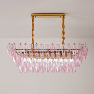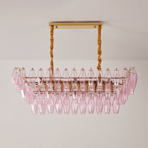 Delicate yet bold, the Oasislives Rose Prism Glass Chandelier brings a soft touch of modern luxury to your space. Featuring a tiered arrangement of rose-tinted crystal glass prisms, this rectangular chandelier radiates warmth and charm with a hint of romance. The light reflects gently through the faceted glass, creating a captivating ambiance. Supported by a sleek gold frame and fabric-wrapped suspension, it’s ideal for dining rooms, kitchen islands, or any space in need of a sophisticated and stylish statement piece.
