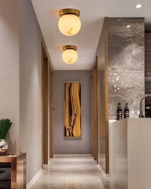 Revitalize your space with the Alabaster Melange Brass Ceiling Light. With its elegant alabaster stone and luxurious brass finishing, this flush mount light exudes understated opulence. Experience the perfect blend of refinement and functionality as this light enhances your room with a touch of sophisticated flair.