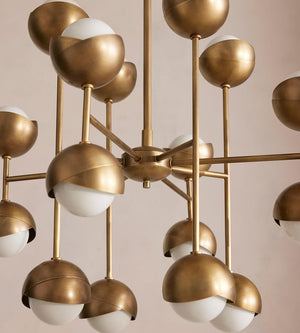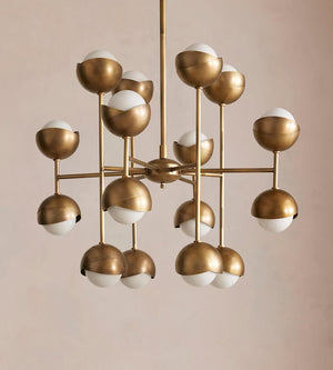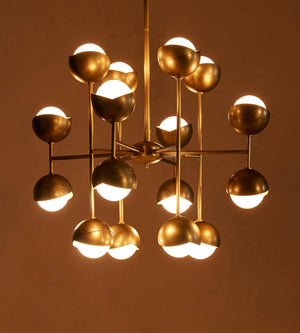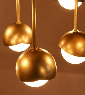The lighting schemes in White City House and 180 House formed the inspiration for the Seed chandelier. Comprising a cluster of bisected orbs in hand-applied patinated brass, the chandelier serves as a versatile lighting option that is suited to both narrow hallways and expansive living areas.