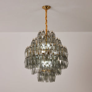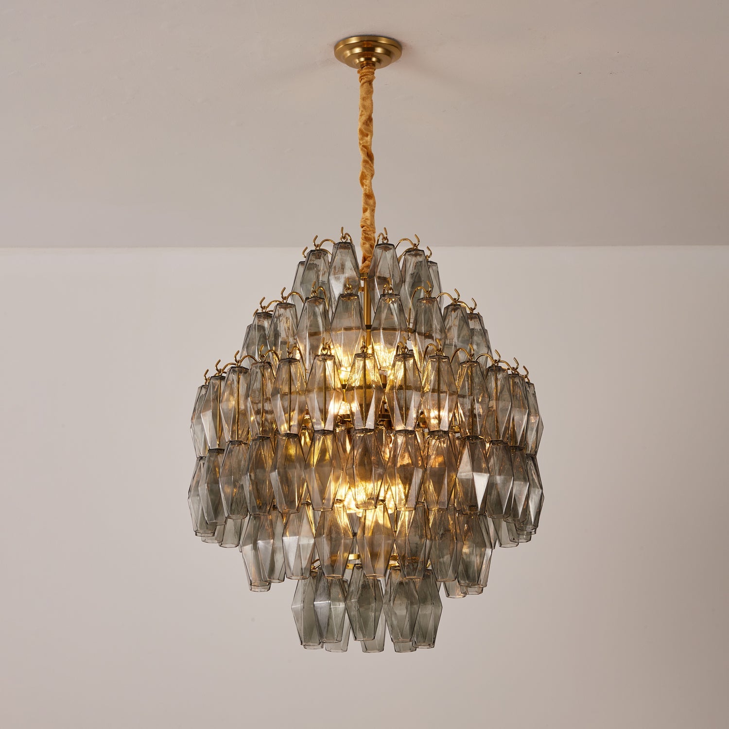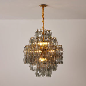 Refined and sculptural, the Oasislives Smoke Gray Prism Round Chandelier showcases a harmonious balance of classic glamour and contemporary design. Its rounded, tiered silhouette is formed by layers of faceted smoke gray glass prisms, which catch and diffuse light in a soft, moody glow. Accented with a luxurious gold-finished frame and velvet-wrapped suspension, this chandelier makes a sophisticated statement in living rooms, foyers, or elegant dining areas. Part of the Oasislives Prism Series, it offers timeless beauty with a modern edge.