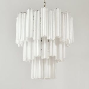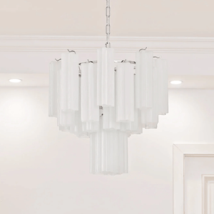 The Frosted Mist Chandelier features elegant, misty white glass panels that cascade in a multi-tiered design, reminiscent of soft, drifting clouds. The frosted, haze-like finish on each glass element adds a layer of subtle sophistication, diffusing light gently to create a calm and serene atmosphere. With its sleek, modern design and muted, misty white color, this chandelier blends effortlessly into minimalist or contemporary spaces, making it perfect for living rooms, dining areas, or large open foyers. The Frosted Mist Chandelier is the ideal choice for those seeking an understated yet luxurious centerpiece that radiates elegance and tranquility.