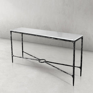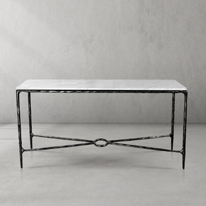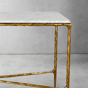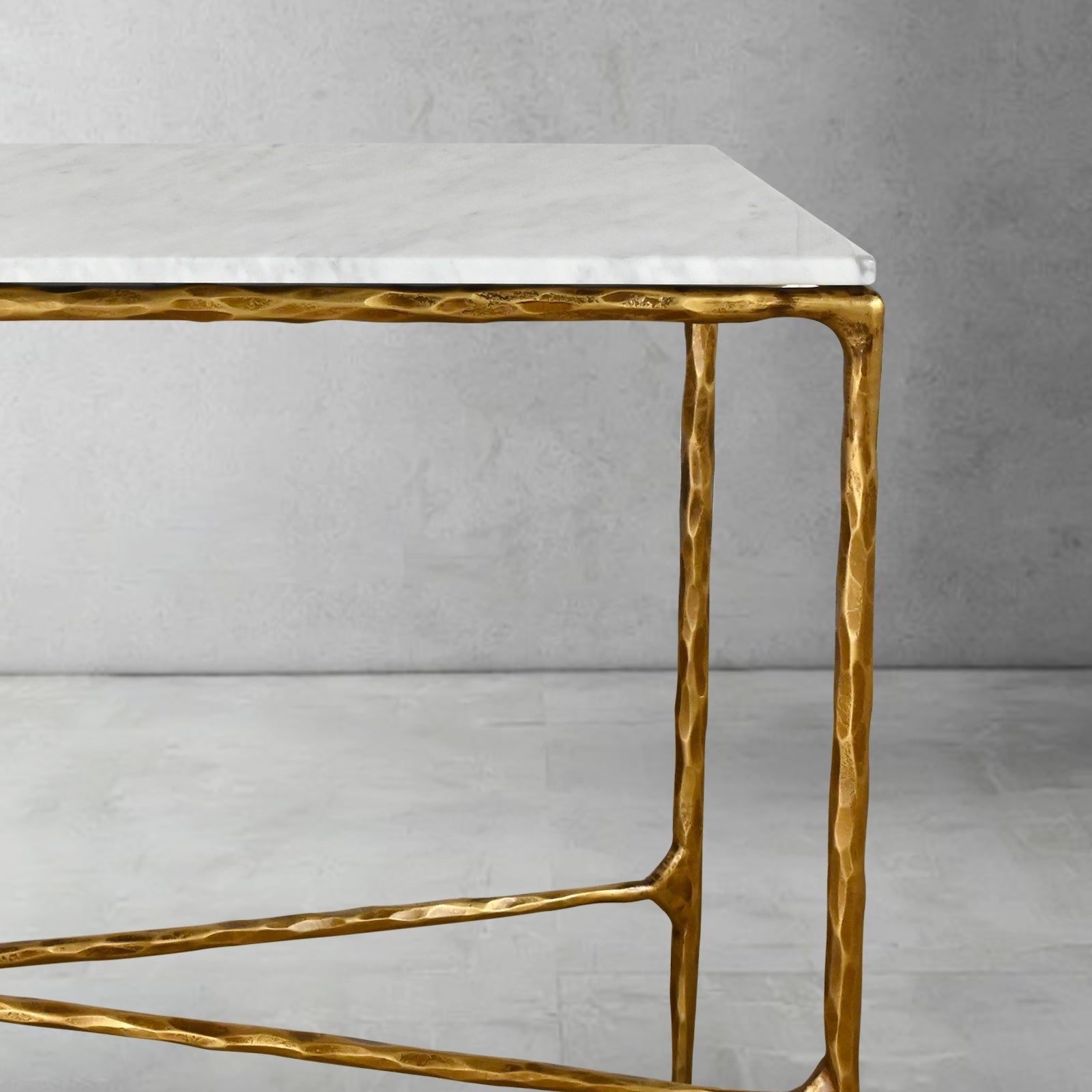 This coffee table has transformed my living room. The combination of the hammered metal base and clear glass top creates a luxurious look. It's a statement piece that draws compliments from everyone who visits.
