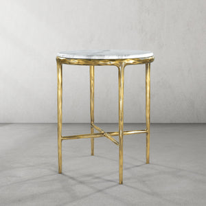 Our collection by the rustic sensibility of hand-forged metal with cool Italian Carrara marble. Employing an ancient fabrication process, artisans hand hammer the metal bars to reveal an alive, imperfect and organic texture. The pounded, tapered silhouettes are a rich counterpoint to the smooth, honed stone.