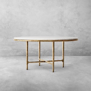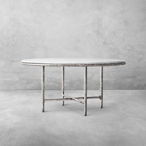 Our collection by the rustic sensibility of hand-forged metal with cool Italian marble. Employing an ancient fabrication process, artisans hand hammer the metal bars to reveal an alive, imperfect and organic texture. The pounded, tapered silhouettes are a rich counterpoint to the smooth, honed stone.