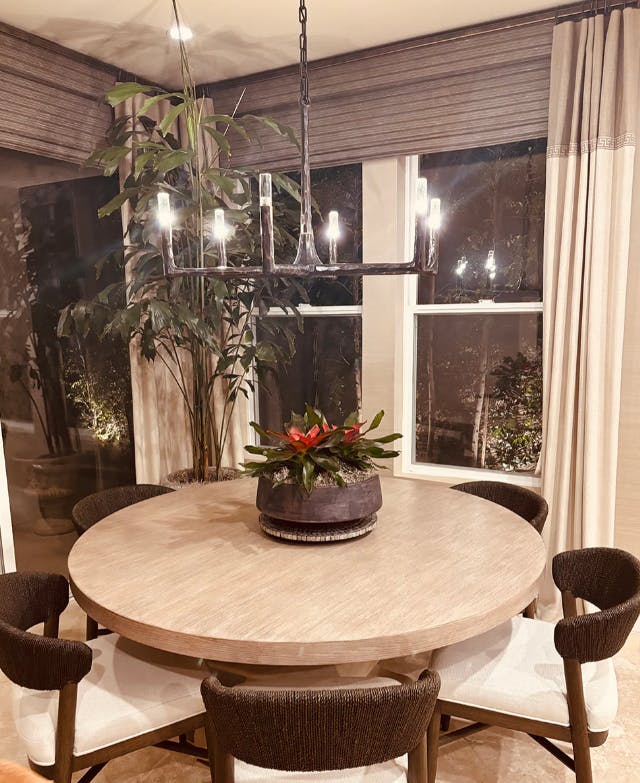 It provides plenty of light without being harsh. The exposed bulbs create a soft, ambient glow that’s great for evening meals.