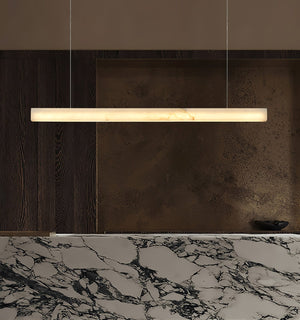 The Velmore Linea Pendant Lamp by Oasislives is a harmonious blend of raw elegance and modern precision. Sculpted from a single alabaster bar, it emits a warm, ambient glow through its naturally veined surface—each piece a one-of-a-kind expression of organic beauty. Suspended with minimalist wire supports, the Velmoré Linea floats effortlessly in space, making it an ideal statement above dining areas, kitchen islands, or creative workspaces. With its elongated silhouette and subtle luminosity, this pendant embodies Oasislives’s signature style: quiet luxury, refined form, and timeless materiality.