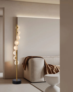 Vertical Antique Alabaster Globes in semi-flush fixtures Standing Marble Floor lamp