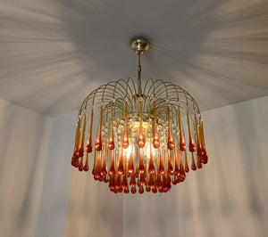 Vintage – Murano Teardrops Chandelier – 70s – Pink prisms