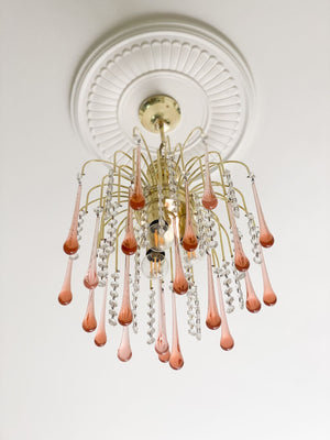 Vintage – Murano Teardrops Chandelier – 70s – Pink prisms