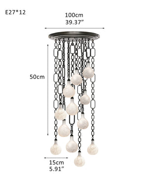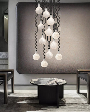 Expertly crafted with precision, the Alabaster Chandelier embodies the artistry of fine design. Each alabaster element is carefully shaped to reveal its natural veining and subtle glow, reflecting exceptional attention to detail. Built for both beauty and longevity, this chandelier is a true statement piece—where craftsmanship meets timeless elegance.