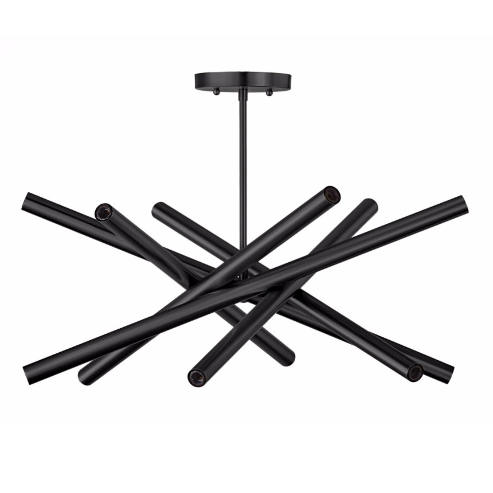 With seamlessly drawn brass that is hand processed, expertly finished, and assembled right here in our shop, the Vortice is a 12 light chandelier crafted in the spirit of Italian Mid-Century design. We like tubular shaped bulbs with this chandelier to maintain the length of the lines. There are 3 different sizes of this style available in our signature finish Modern Brass, polished nickel and black enamel.