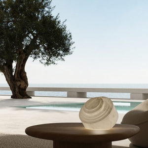 The Cala table lamp is compact yet expressive, ideal for adding warmth, texture, and character to both modern interiors and more relaxed, natural spaces.